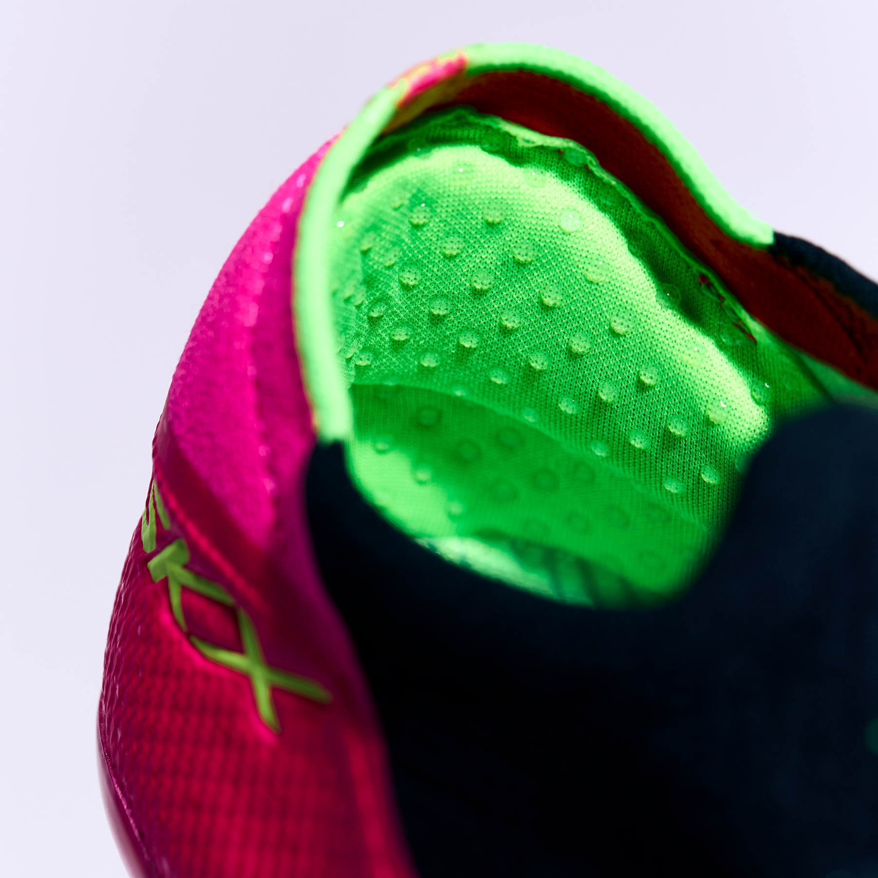 Internal silicone grip elements to enhance lock-down, preventing foot movement inside the shoe.